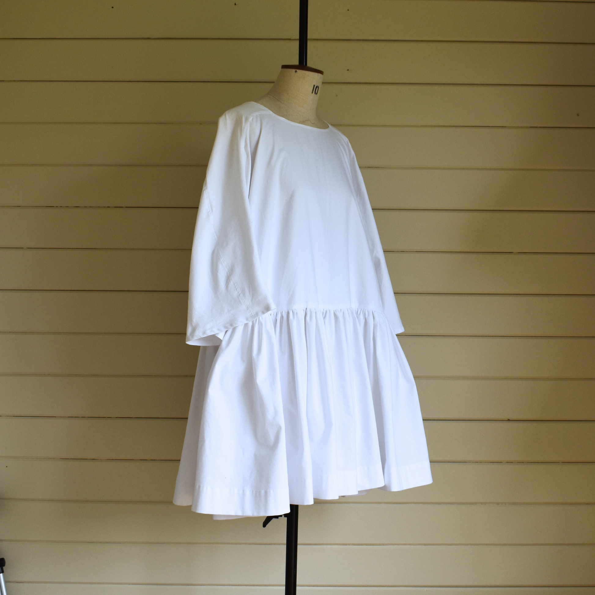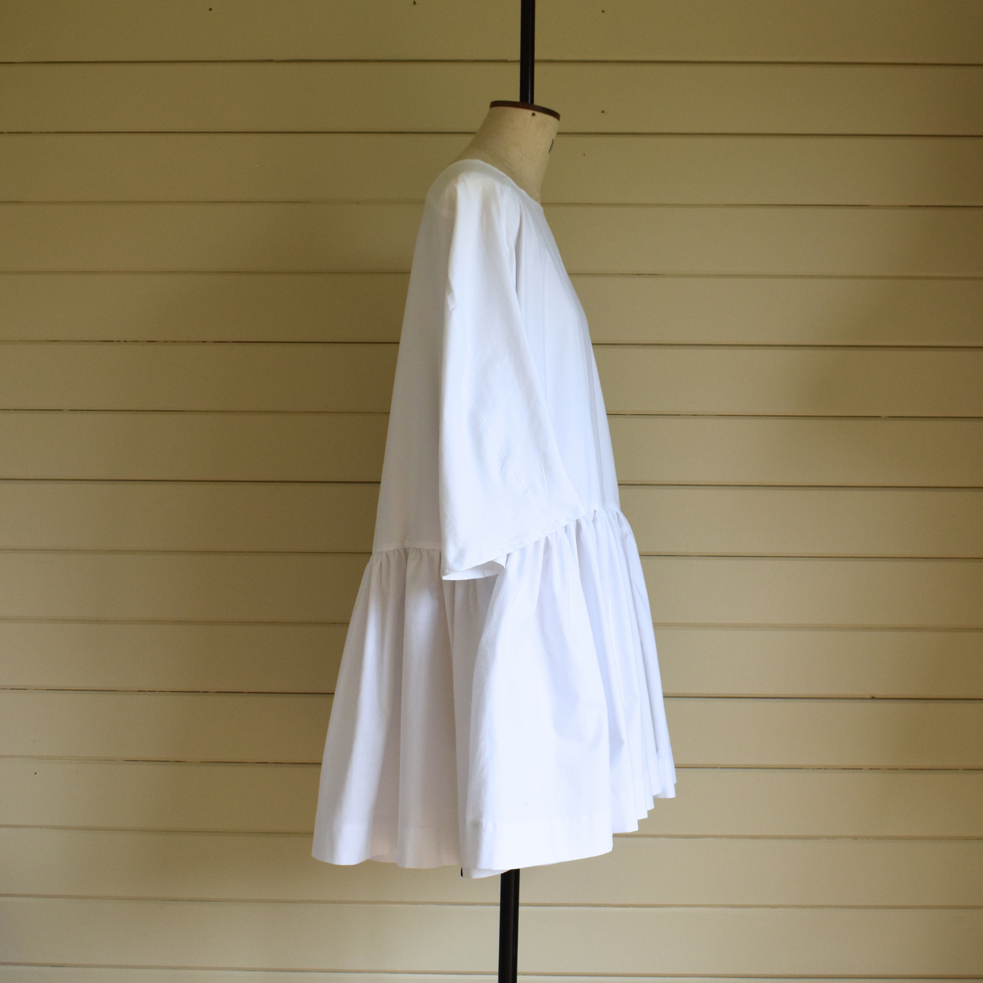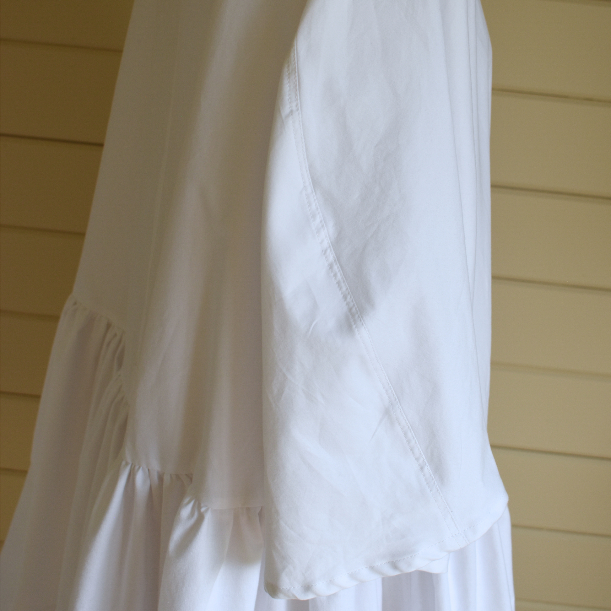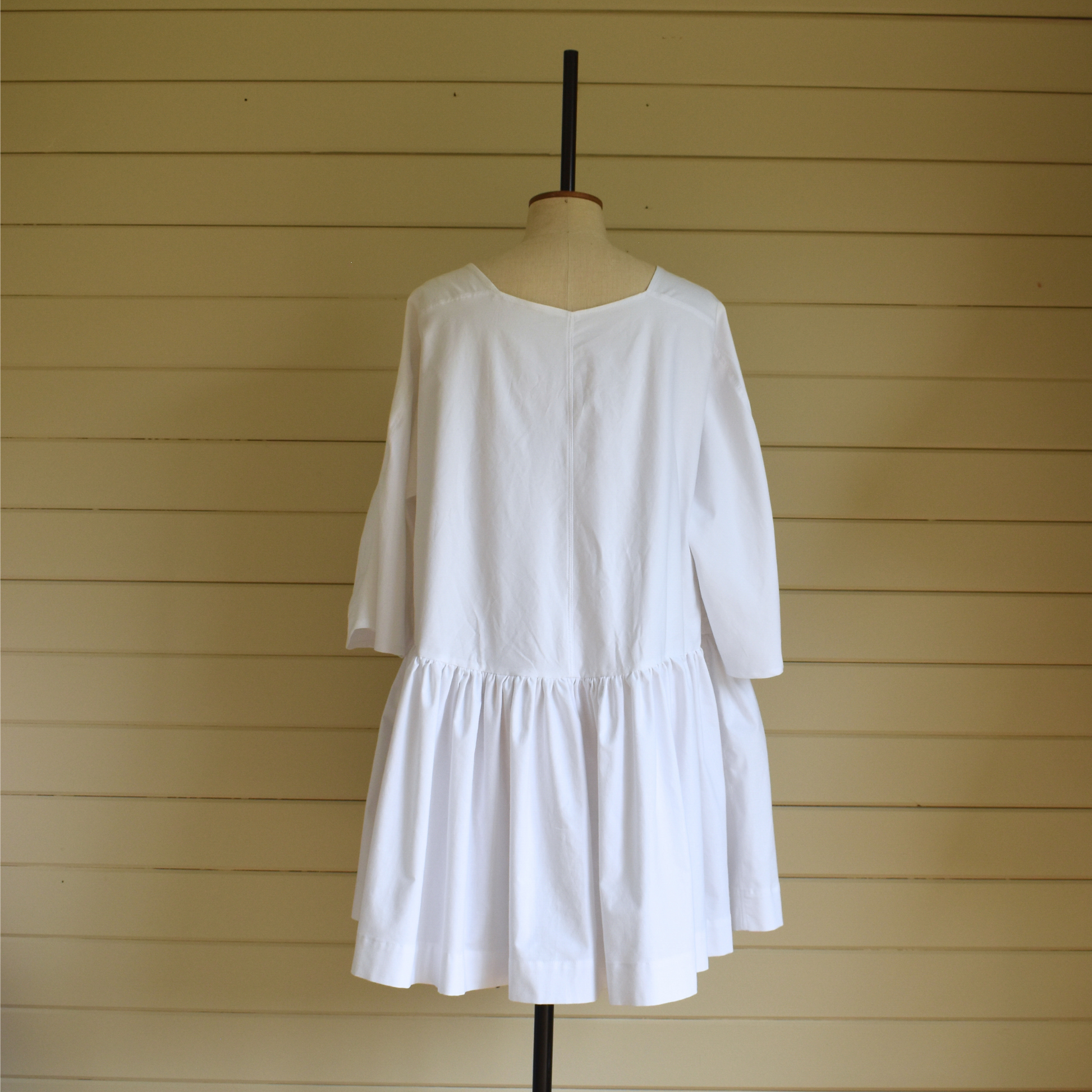 Light and breathable, the Amy dress is crafted from rescued high-thread-count linen once used in luxury hospitality. Its oversized silhouette flatters with quiet ease: a square neckline, low back, and gathered volume that catches the breeze and rests gently on the skin.
