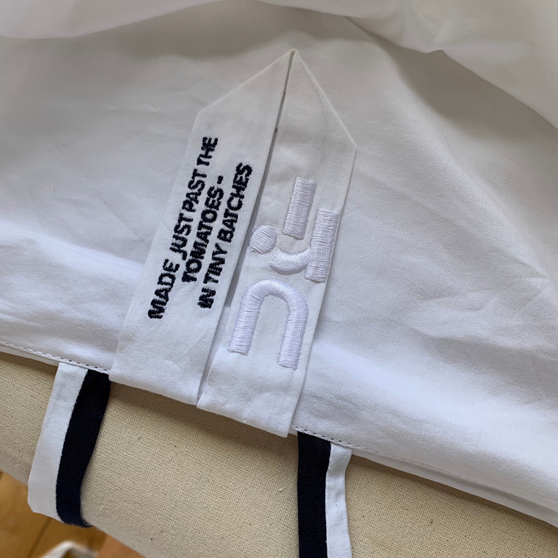 All excess cotton is kept for future patchwork projects, and any remaining scraps are returned to Fibrelab to become our cotton paper swing tags.