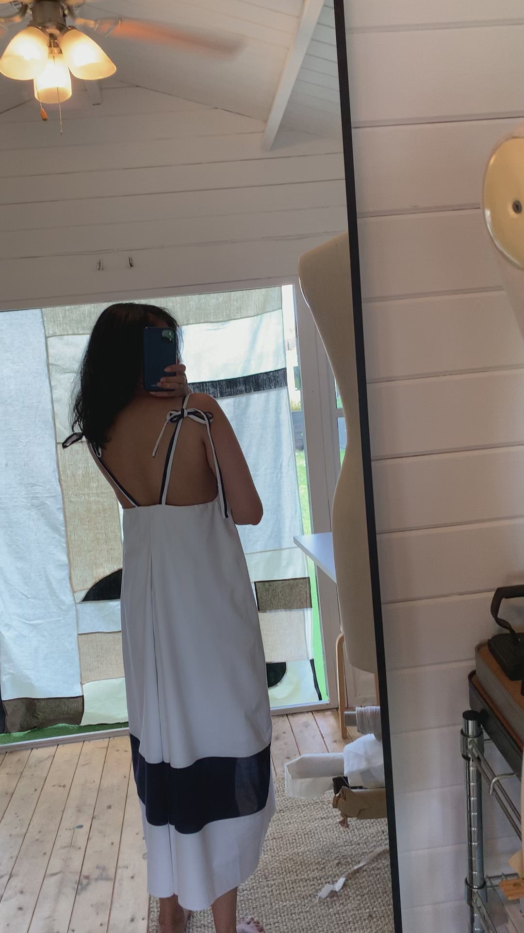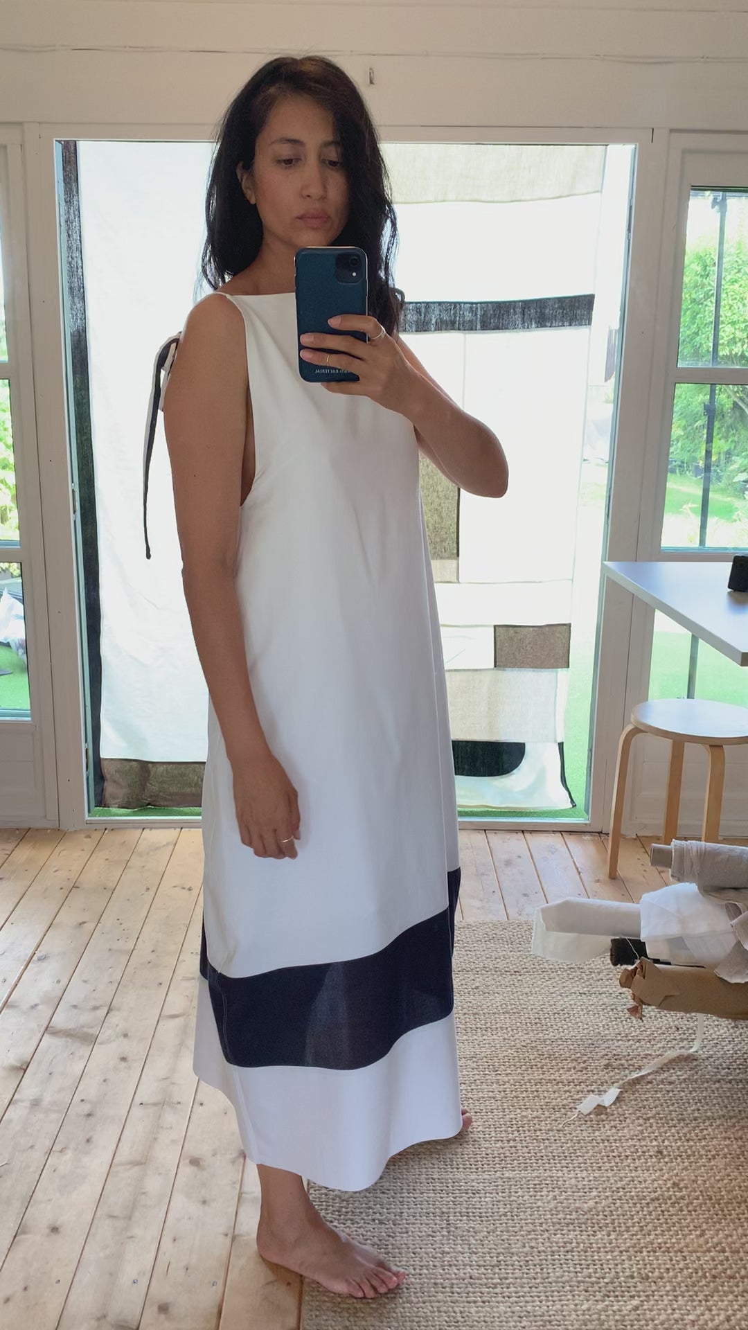 A light, easy-going column with considered details: adjustable straps, a gentle cami silhouette, and a deep box pleat at the back to create graceful movement. The Eugenia is our go-to dress for hot days—versatile enough for weddings, holidays, or simply feeling good in your skin.
