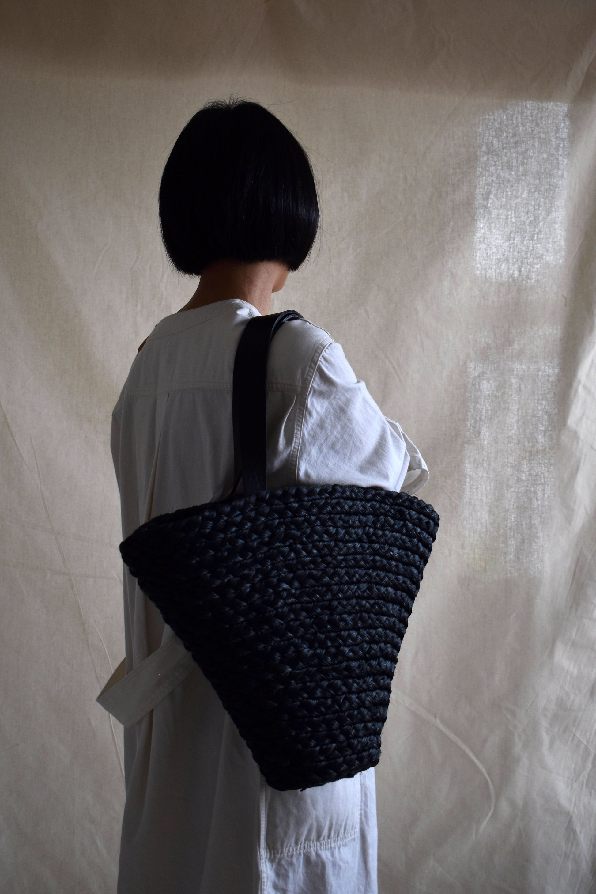 A softer curved shaped bag and our first creation in our abaca modular basket range.