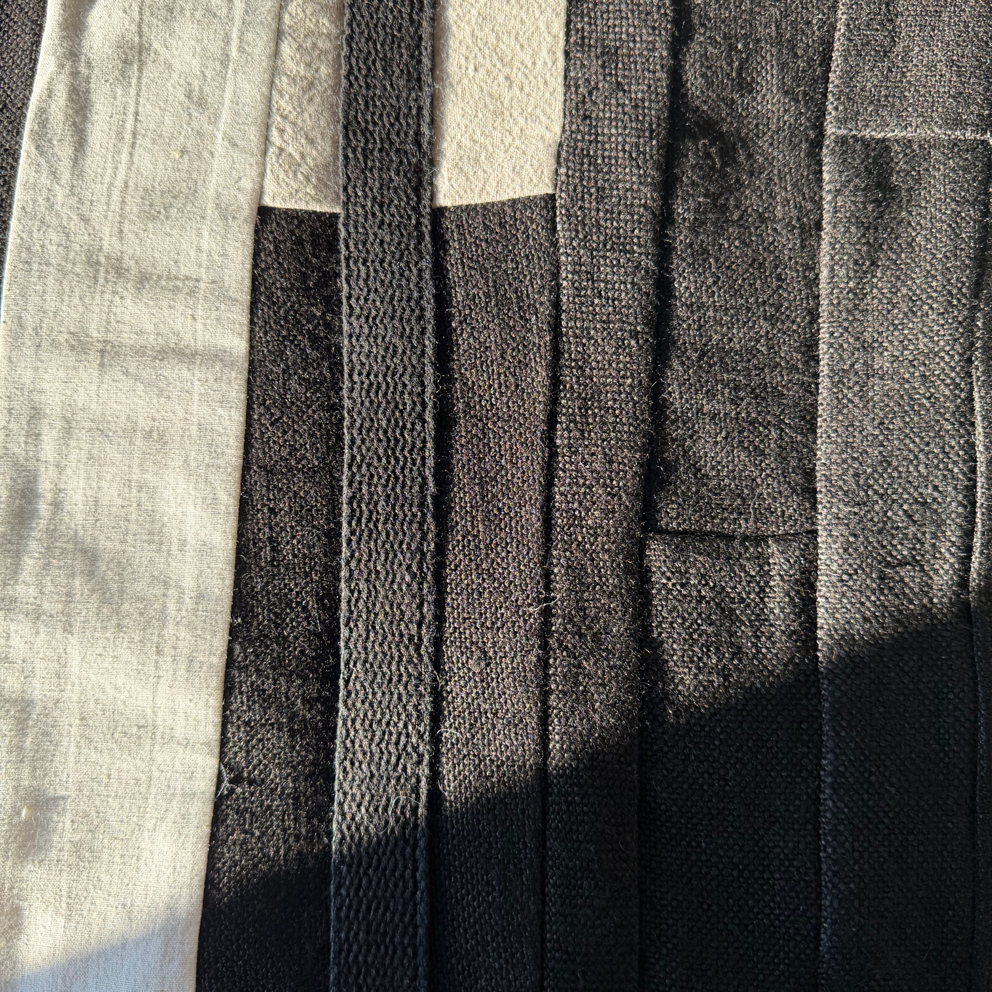 A series of one off patchwork pieces made from heavy weight hemp remnants from past design projects.