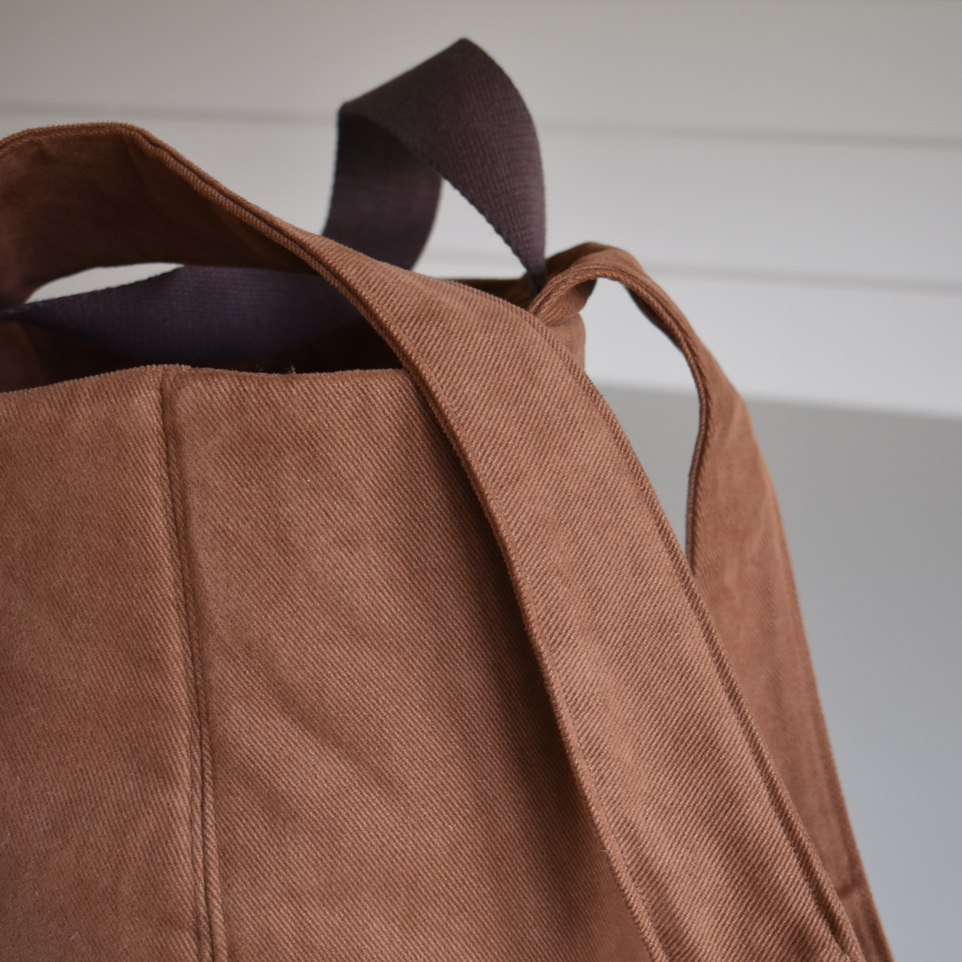 This bag is made from Merchant & Mills brown sanded twill, remnants from Bug Clothing originally used for her trousers.