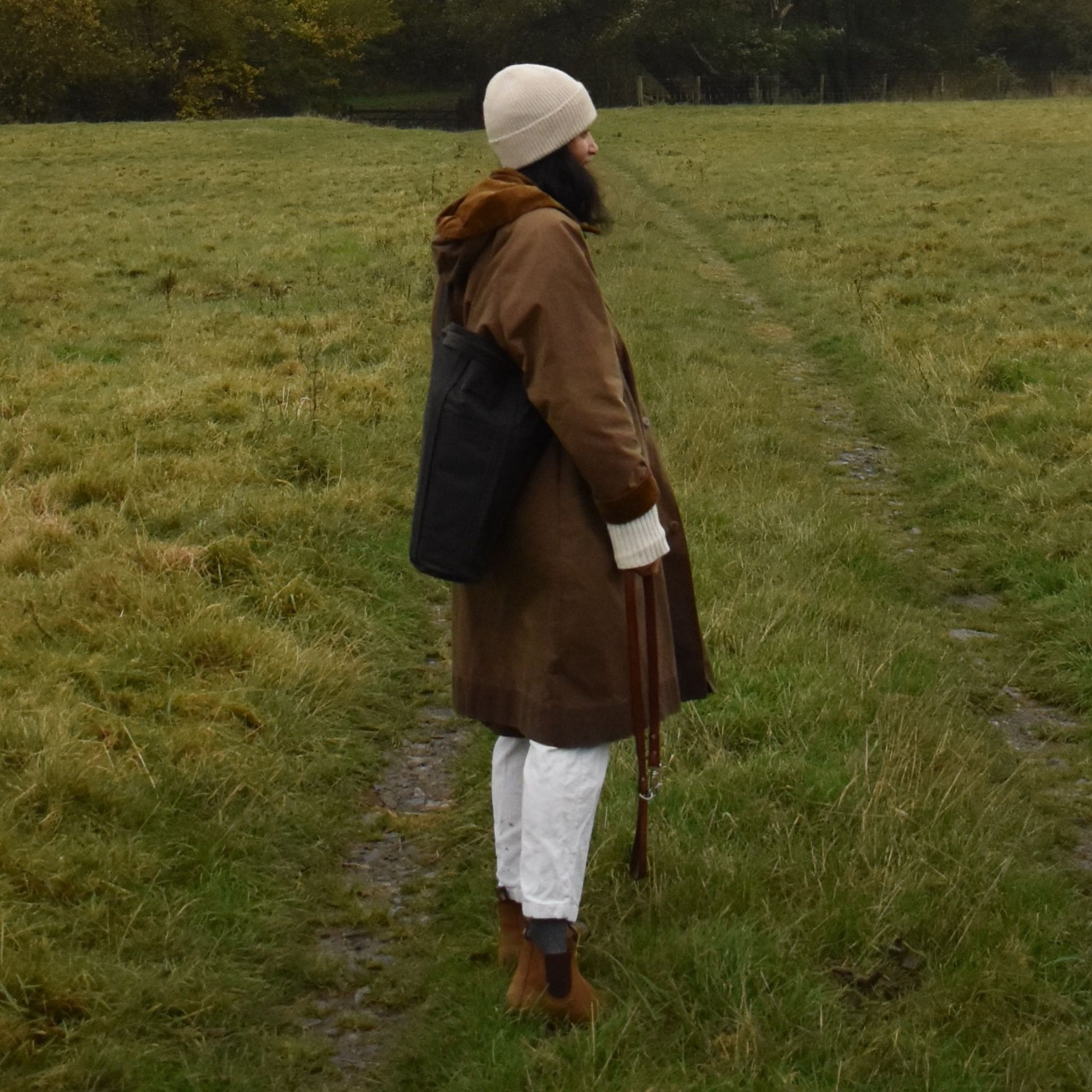 Discover the joy of carrying a bag that evolves with you. Our Yu 2.0, inspired by a beloved shape from our previous collection, is crafted from premium waxed cotton made in England - a material chosen for its sustainability, durability, and perfect fit for unpredictable UK weather.